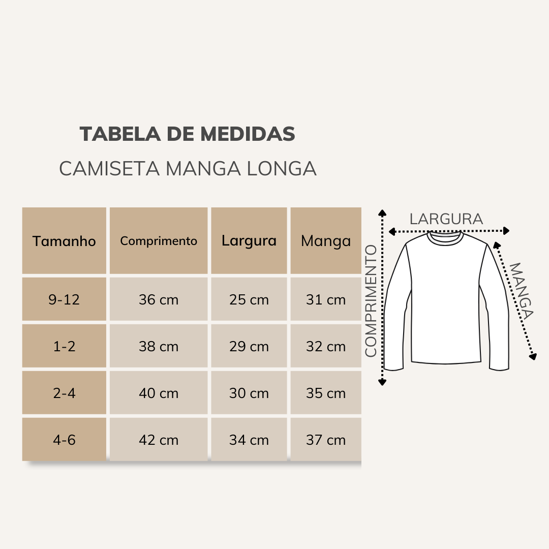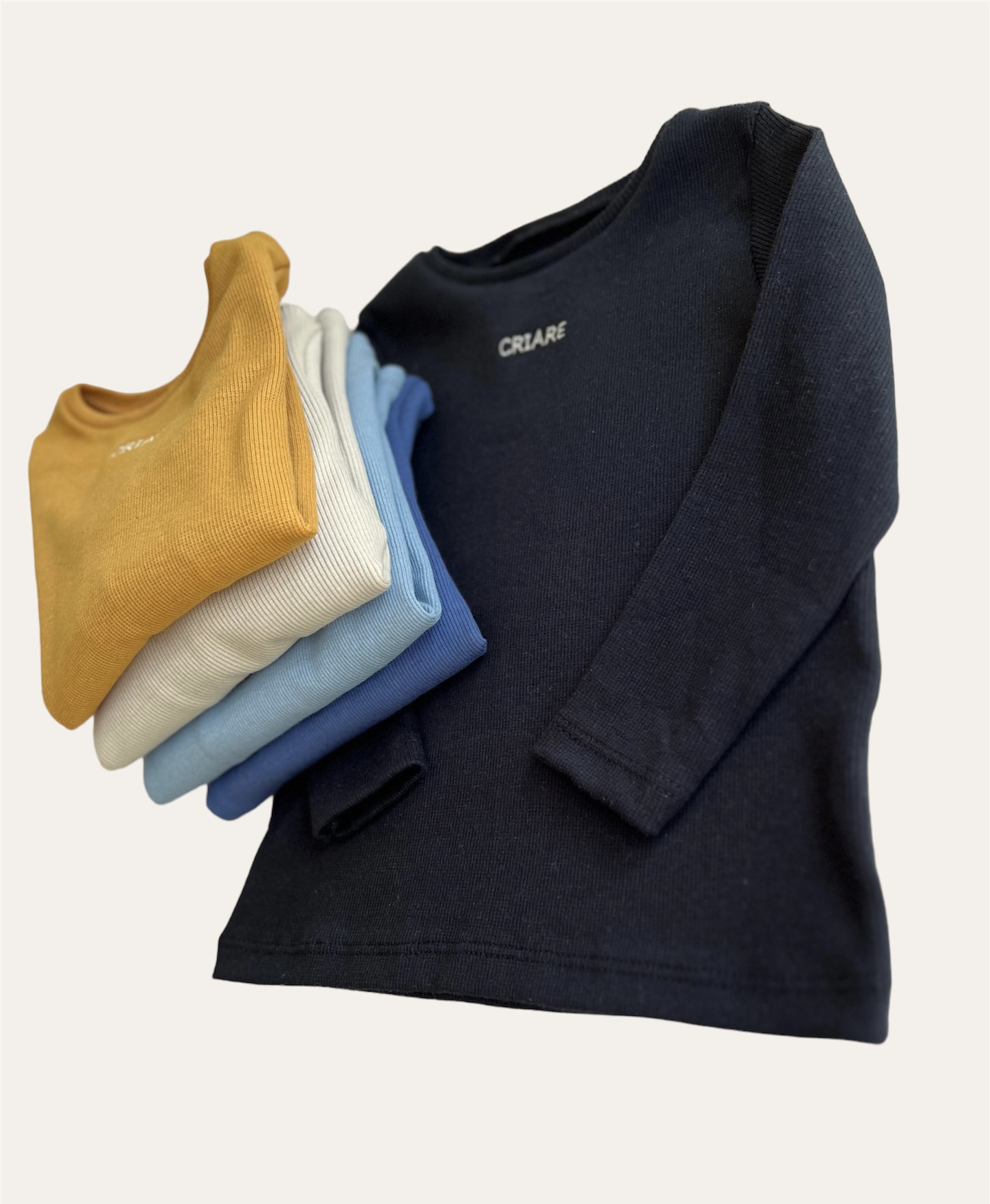 Camiseta manga longa, em malha canelada 96% algodão e 4% elastano. Muito confortável.