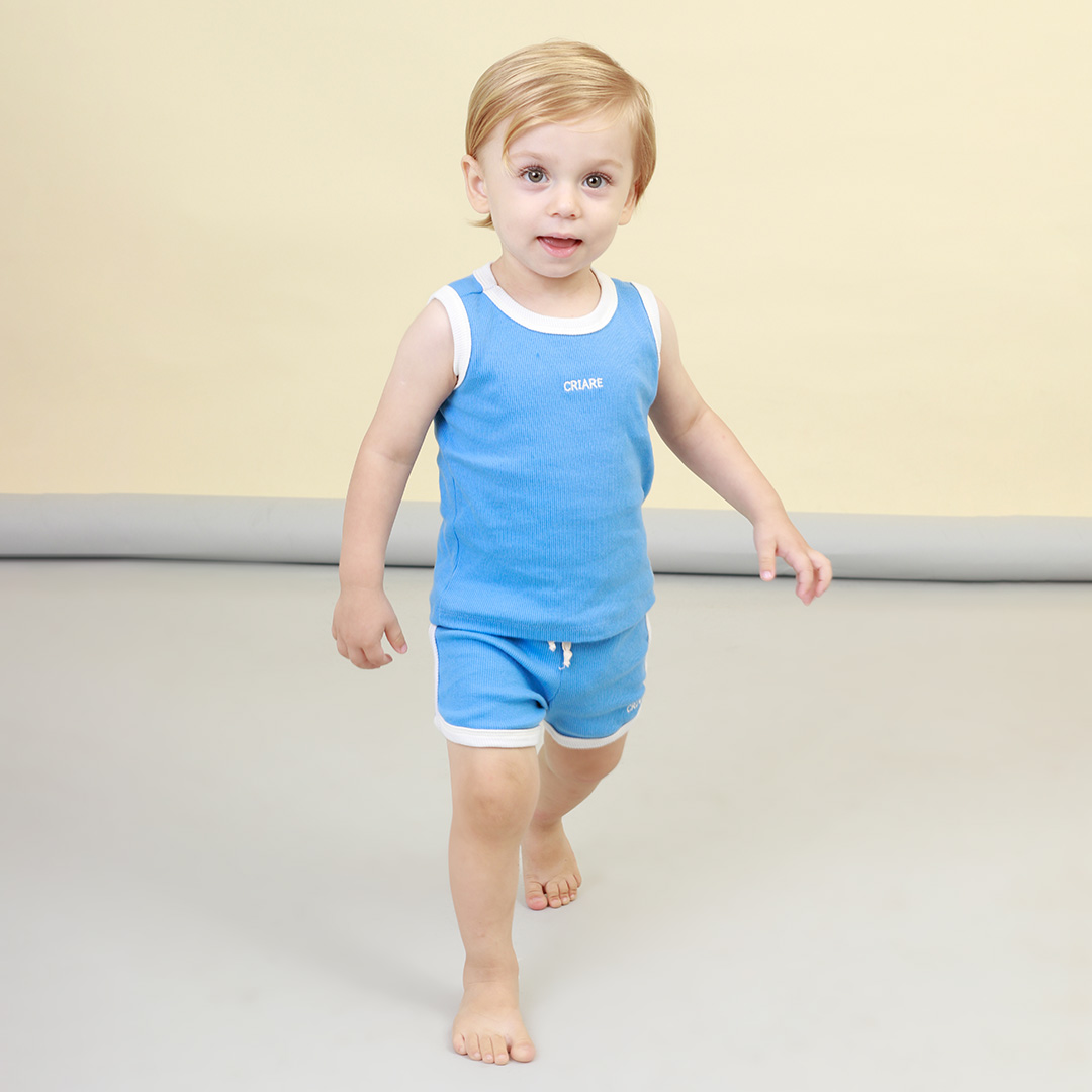 Confortável e fresquinho, o Conjunto Minimalista Unissex, proporciona movimentos livres para o seu pequeno explorar suas aventuras.